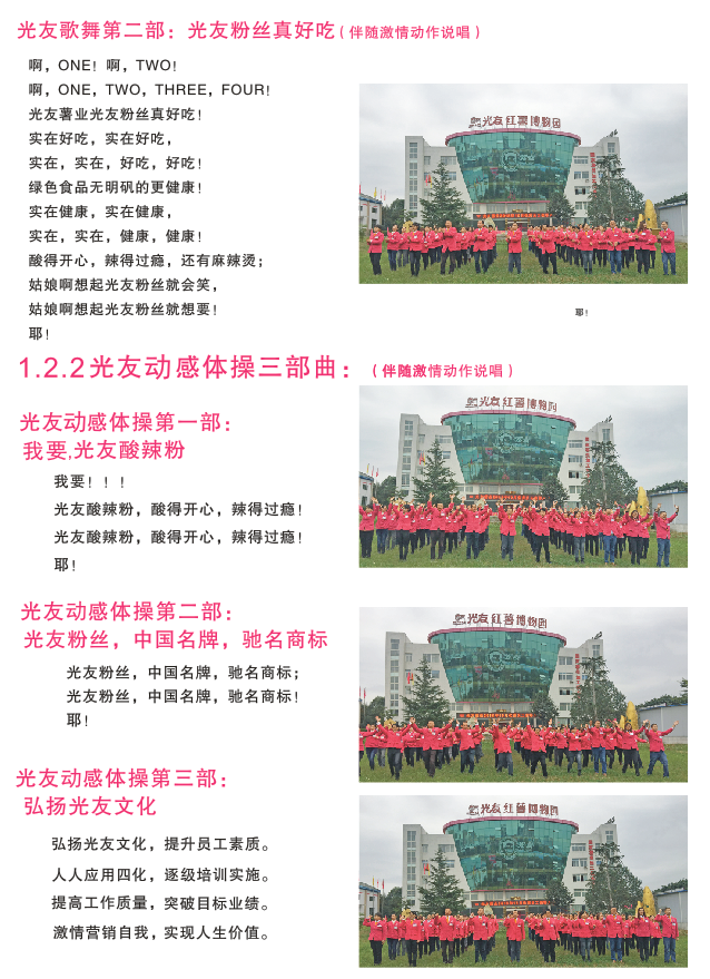 光友薯業(yè)歷來重視企業(yè)文化的發(fā)展和創(chuàng)新,29年來,已形成獨具特色、富有激情、 富有正能量的企業(yè)文化,光友文化是光友薯業(yè)的靈魂,是光友人共有的價值觀和行為準則,對員工無時不產(chǎn)生指導、熏陶、感染、規(guī)范的潛移默化作用,是形成團隊凝聚力的原動力,引導員工積極進取,快樂生活、快樂工作、走向成功。