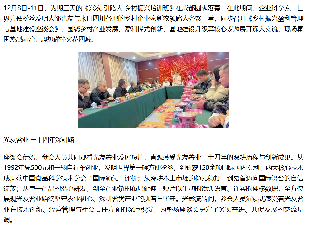 轉(zhuǎn)載鳳凰網(wǎng) 企業(yè)科學(xué)家、世界方便粉絲發(fā)明人鄒光友對話新農(nóng)領(lǐng)路人
